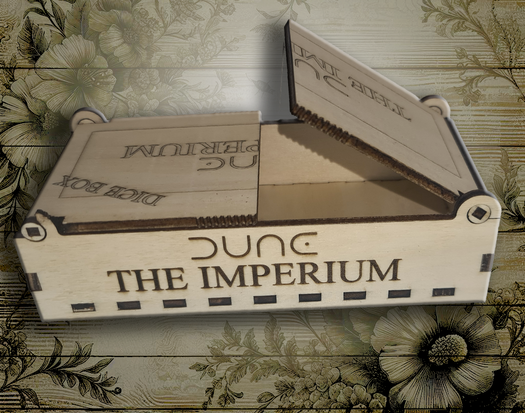 Scatola in legno con doppia apertura dall'alto, utilizzabile come dice box per giochi di ruolo o come porta mazzi di carte.